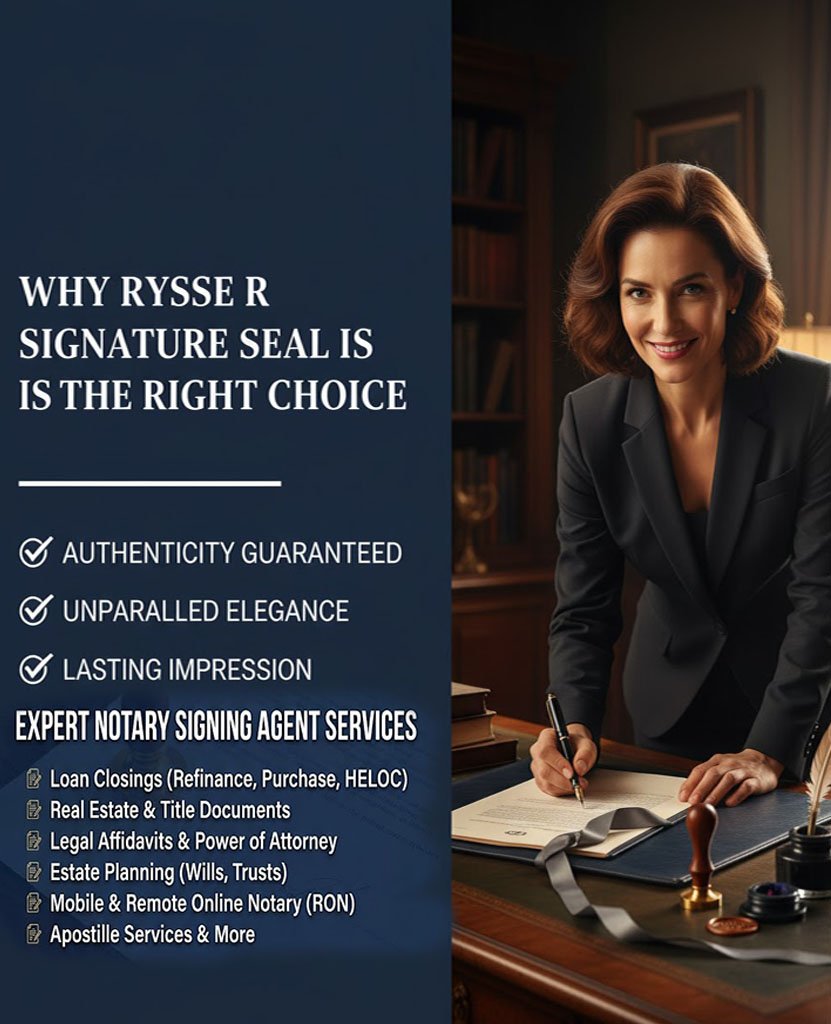 In real estate and legal transactions, a single error can delay closings or invalidate documents. Rysse R. Signature Seal acts as the critical, neutral link ensuring every signature is correct and every detail is verified..